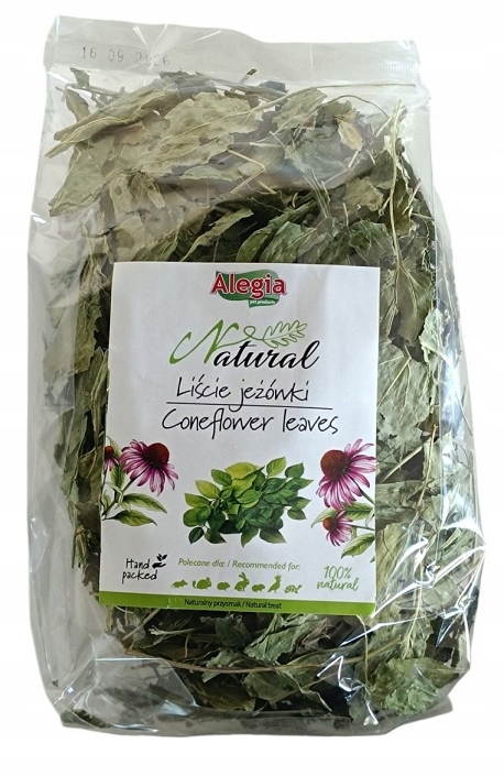 Liście jeżówki 75g Alegia to naturalny, zdrowy dodatek do diety królików i gryzoni, który wspiera odporność, poprawia trawienie i działa przeciwzapalnie. To idealne uzupełnienie codziennego żywienia, szczególnie w okresach obniżonej odporności, stresu lub rekonwalescencji.