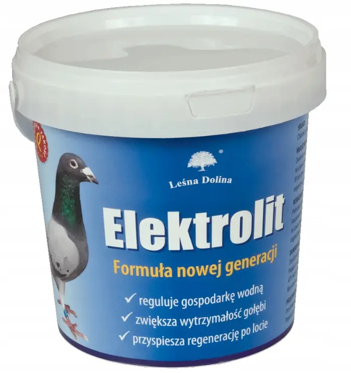 Elektrolit dla gołębi 700 g to wysokiej jakości preparat mineralno-aminokwasowy, przeznaczony do uzupełniania elektrolitów, aminokwasów oraz soli odkwaszających u gołębi pocztowych i ozdobnych. Produkt rekomendowany jest w okresach zwiększonego wysiłku fizycznego, stresu, wysokich temperatur oraz w sytuacjach ryzyka odwodnienia i zakwaszenia organizmu. Elektrolity wspierają prawidłowe nawodnienie, poprawiają wytrzymałość lotową oraz przyspieszają regenerację gołębi po locie, transporcie lub chorobie.