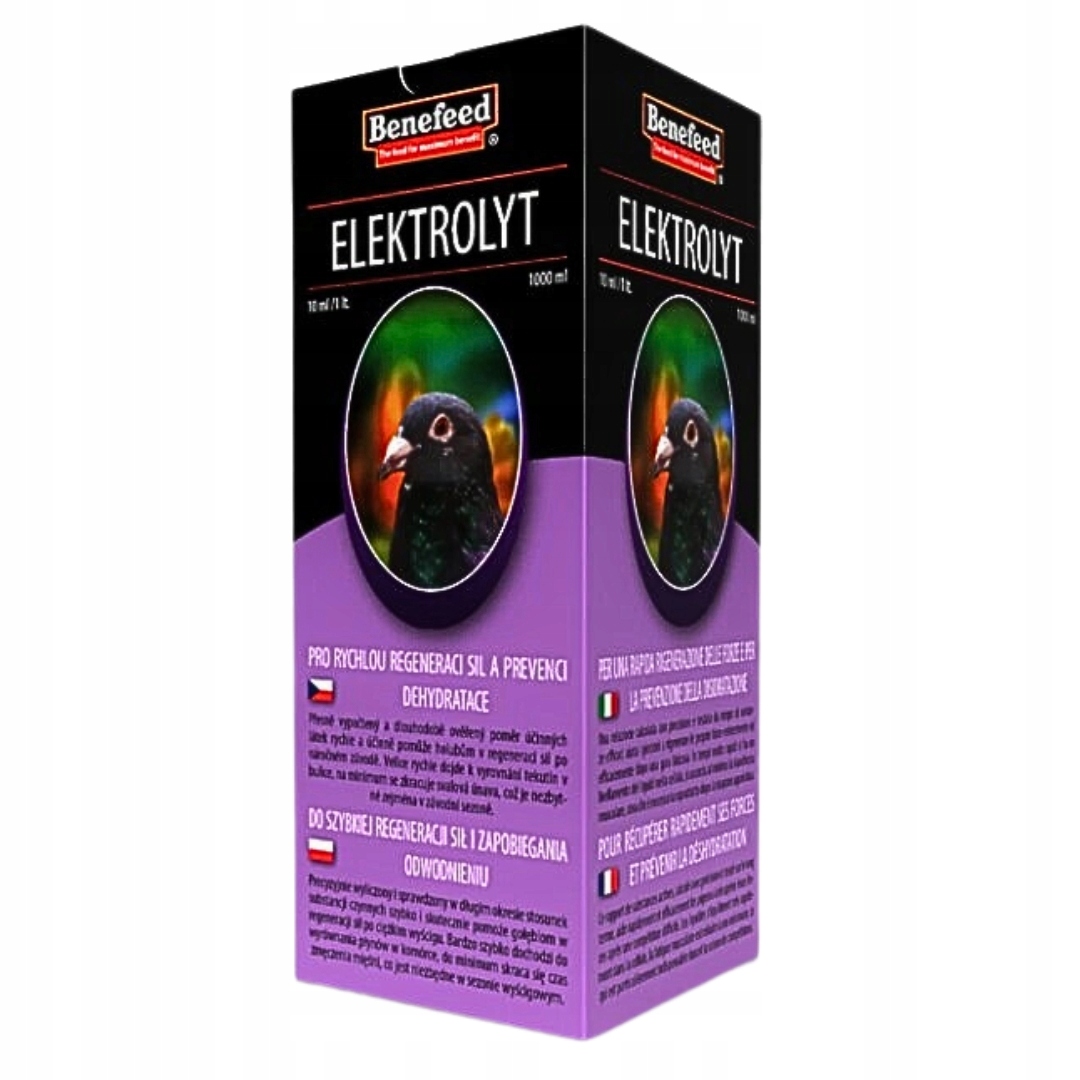 Elektrolit dla gołębi BENEFEED 1000 ml to wysoko skuteczny preparat wspierający szybką regenerację organizmu oraz zapobiegający odwodnieniu u gołębi. Został opracowany z myślą o ptakach poddawanych intensywnemu wysiłkowi fizycznemu, zwłaszcza w sezonie lotowym, kiedy dochodzi do dużych strat płynów i elektrolitów.
