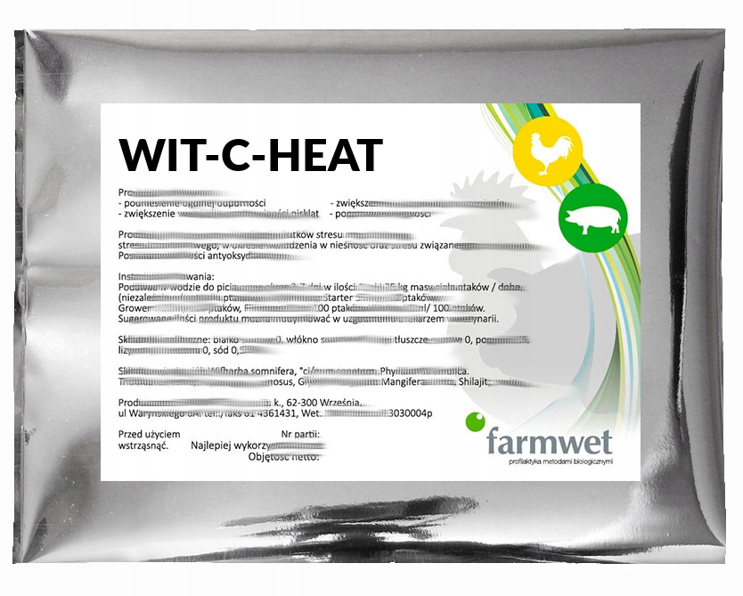 Witamina C dla drobiu 1 kg Farmwet WIT-C-HEAT to nowoczesny preparat antystresowy, stworzony z myślą o ochronie stad w trudnych warunkach środowiskowych. Formuła oparta na witaminie C została dodatkowo wzbogacona o zioła oraz naturalne bioflawonoidy, dzięki czemu działa szybciej i skuteczniej niż klasyczne suplementy.