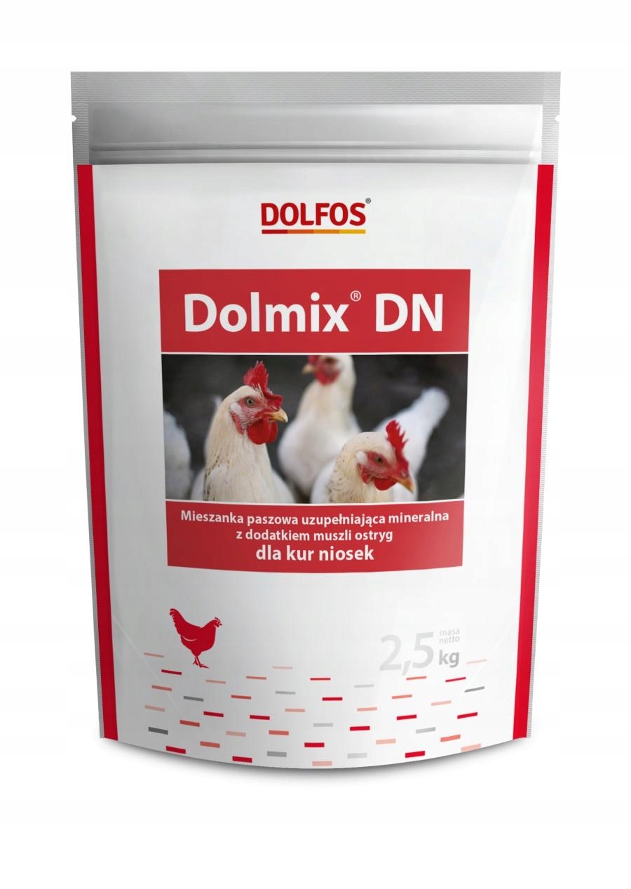Dolmix DN 2,5 kg to mineralno-witaminowa mieszanka paszowa uzupełniająca dla kur niosek, przeznaczona do stosowania bezpośrednio z paszą. Preparat zawiera muszle ostryg jako naturalne źródło wapnia, co sprzyja prawidłowemu wykształceniu skorupek jaj oraz ich wysokiej twardości. Produkt został opracowany przez renomowaną firmę Dolfos.