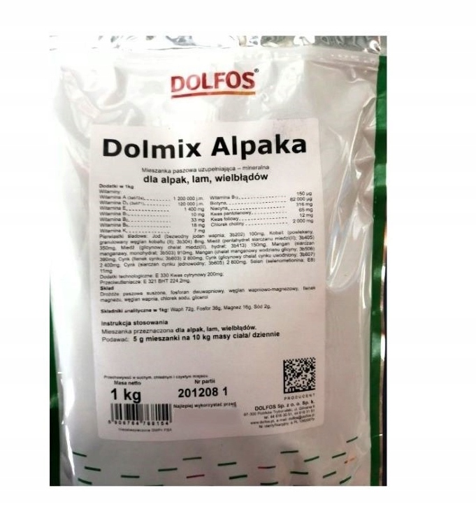 Mieszanka paszowa DOLFOS Alpaka 1 kg – witaminy i minerały