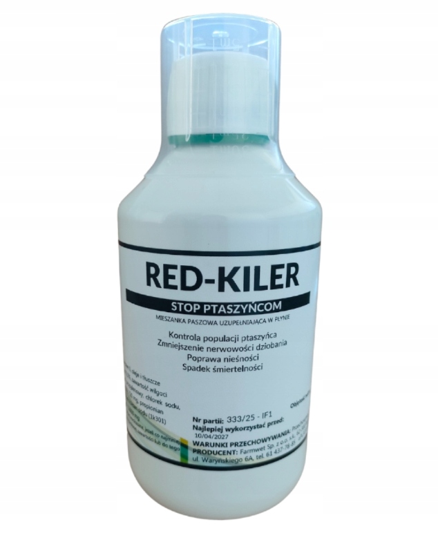 RED-KILER Farmwet 250 ml to innowacyjny, płynny preparat paszowy uzupełniający przeznaczony dla drobiu, który wspomaga ograniczanie presji ptaszyńca kurzego poprzez podawanie z wodą pitną. To wygodne i bezpieczne rozwiązanie dla hodowców, którzy chcą poprawić komfort bytowania ptaków bez konieczności częstego opryskiwania kurnika.