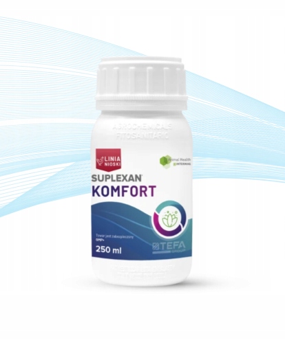 Preparat Suplexan Komfort dostępny jest również w większej pojemności 1 L, polecanej do większych stad oraz regularnego stosowania w okresach upałów i silnego stresu – warto sprawdzić wariant 1-litrowy.
