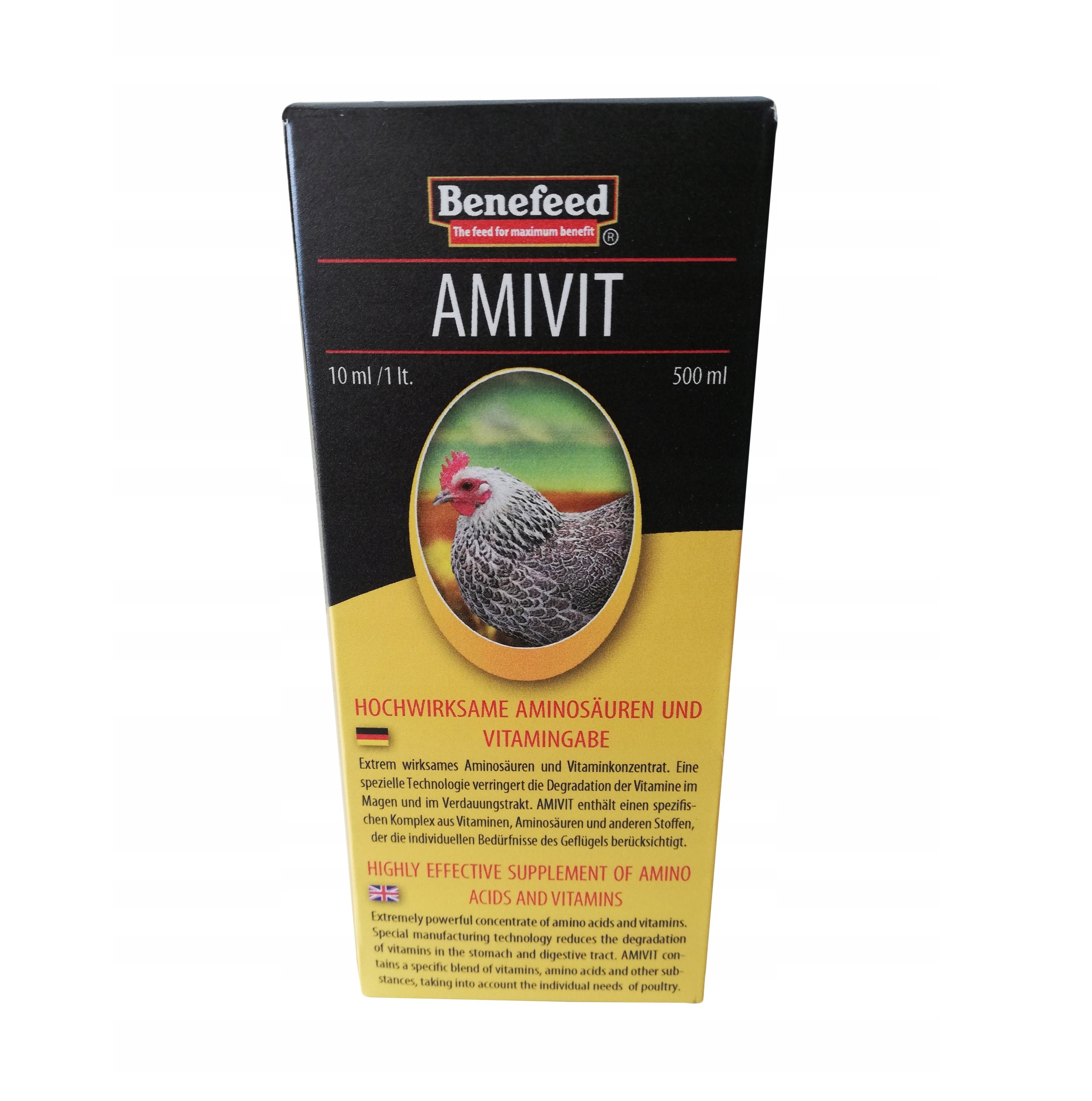 - Amivit Benefeed 1 L– polecany przy większej liczbie stada i regularnej suplementacji